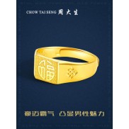 周大生黄金戒指男足金5G极光金工艺福字男戒指环送爸爸父亲礼物