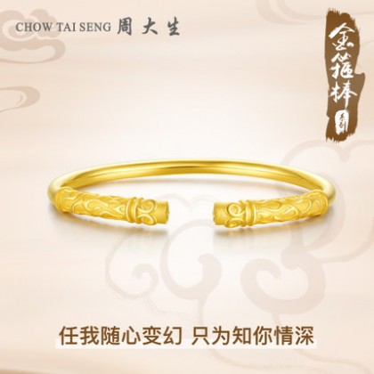 周大生黄金手镯足金999男士金箍棒开口金手镯情侣款时尚正品新款