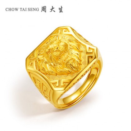 周大生黄金戒指男款新款999足金狮头指环正品首饰送