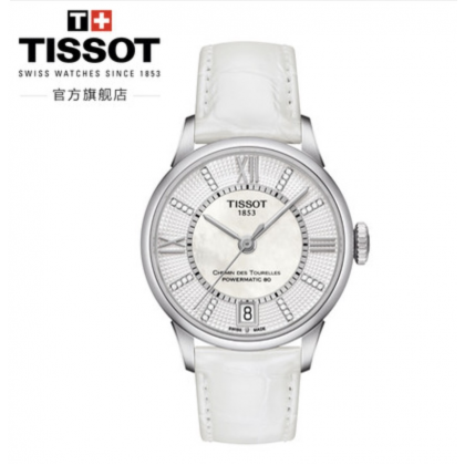 Tissot天梭官方正品杜鲁尔商务时尚潮流镶钻自动机械皮带手表女表